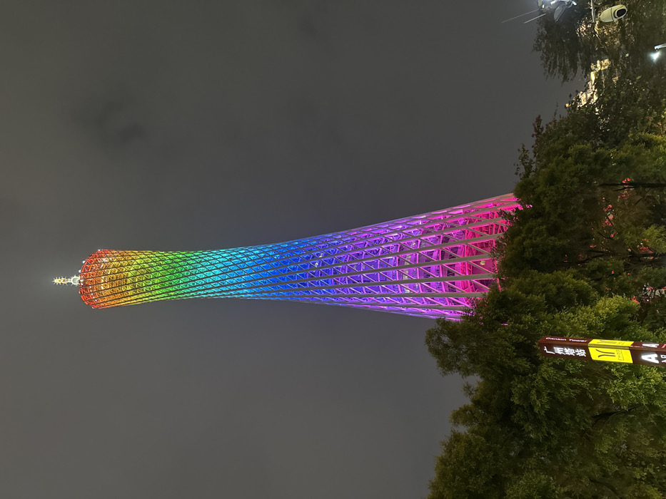 - "A towering, illuminated structure, identified as the Guangzhou Tower (Canton Tower), dominates the nighttime scene in the city's Haizhu District, China" by FM-Mlchq1, licensed under CC BY 4.0