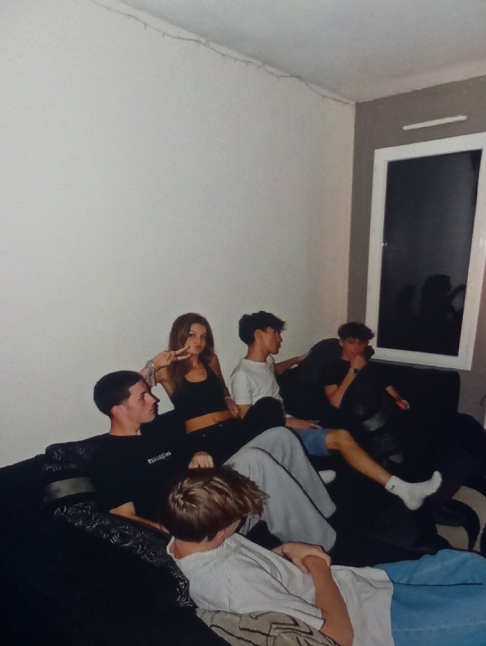 - "This image depicts five individuals, appearing to be young adults or teenagers, seated on two dark-colored couches within an indoor residential setting" by FM-a9LKm1, licensed under CC BY 4.0