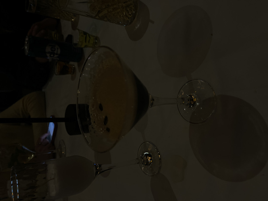 The image depicts a dimly lit indoor table scene, likely in a restaurant or bar