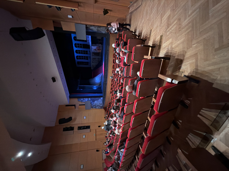 - "The image displays the interior of a theatre auditorium in Plovdiv, Bulgaria, captured from an elevated position within the seating area, looking towards the stage" by FM-3q1Os1, licensed under CC BY 4.0
