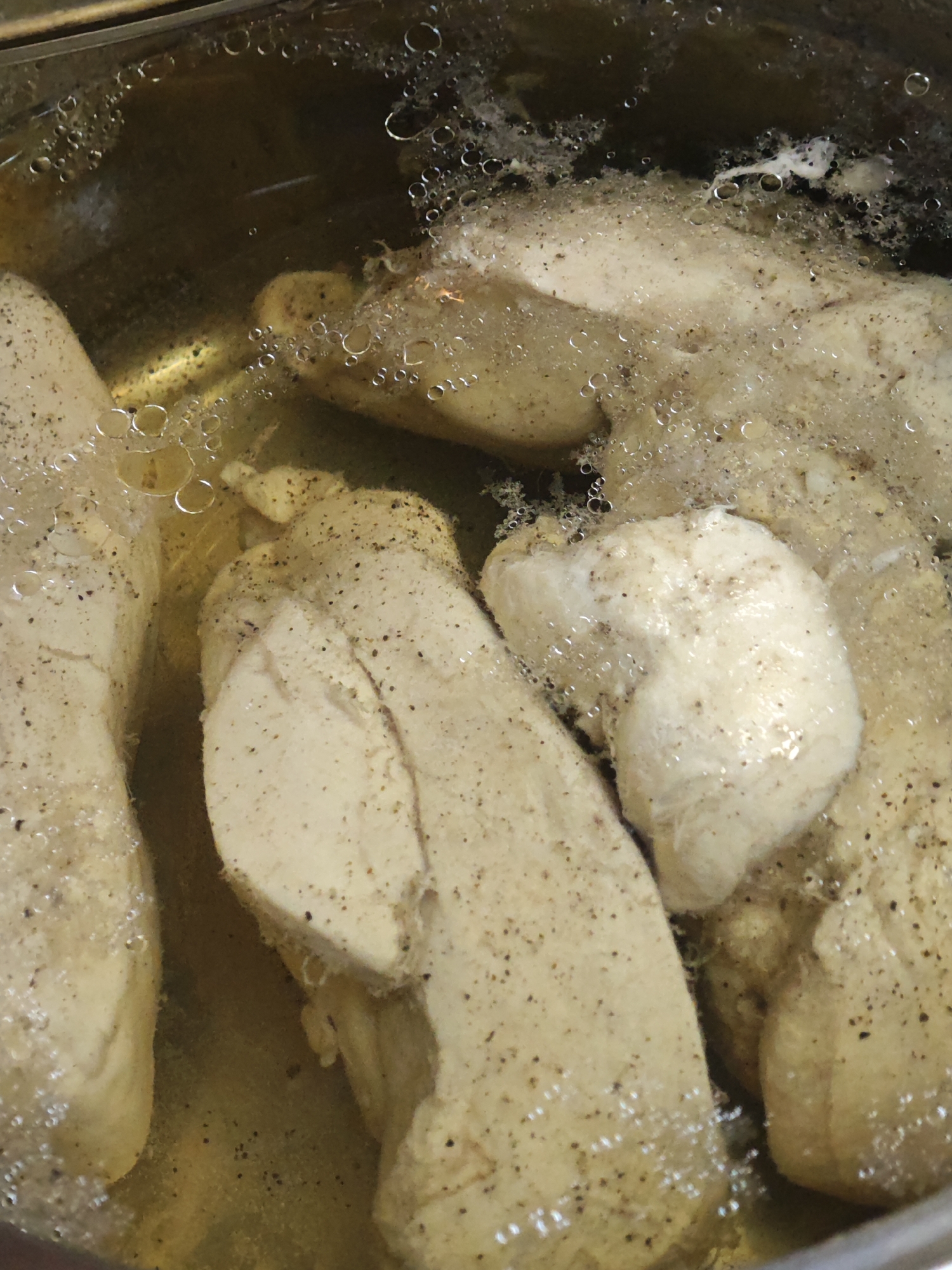 - "cooked chicken breasts in a pot of liquid" by FM-RB25D3, licensed under CC BY 4.0
