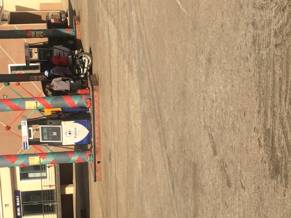 This image depicts an outdoor scene at a petrol station in Barden Yana, Nigeria, under bright daylight