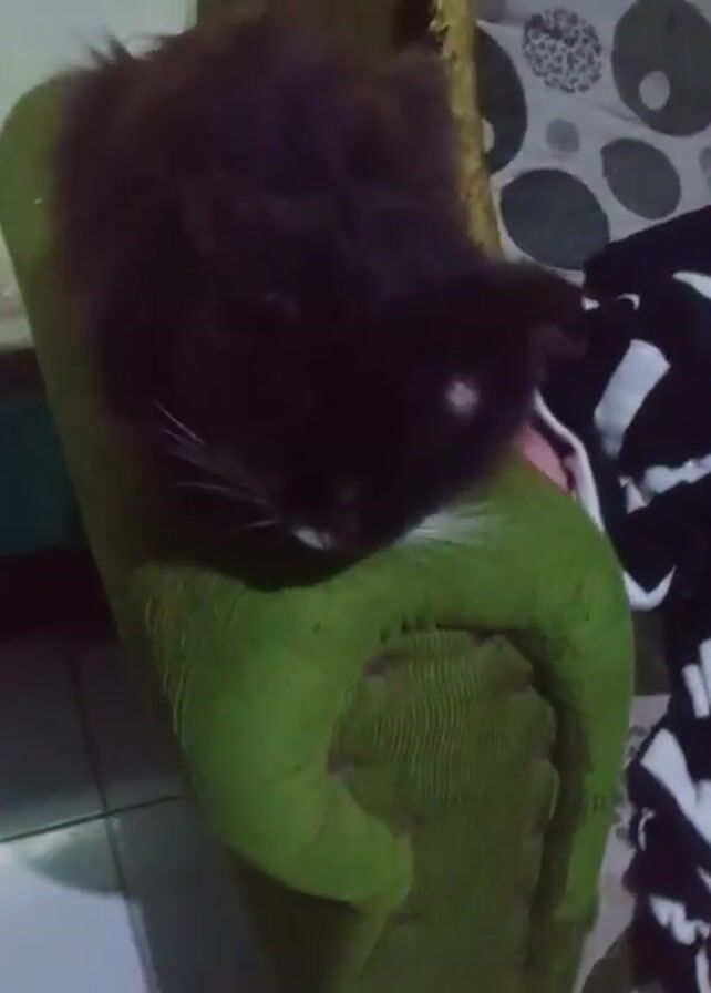 - "A black cat is lying on a green bolster pillow" by FM-mGKU03, licensed under CC BY 4.0