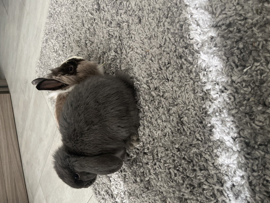 - "The scene depicts two rabbits situated indoors on a light grey, high-pile shag rug" by FM-PwRFu2, licensed under CC BY 4.0