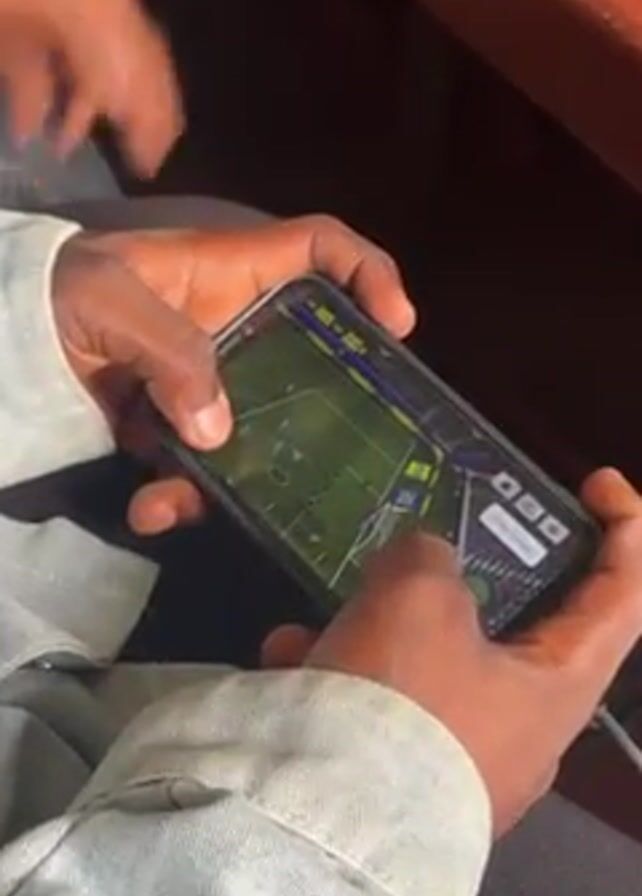 person playing a soccer video game on their smartphone