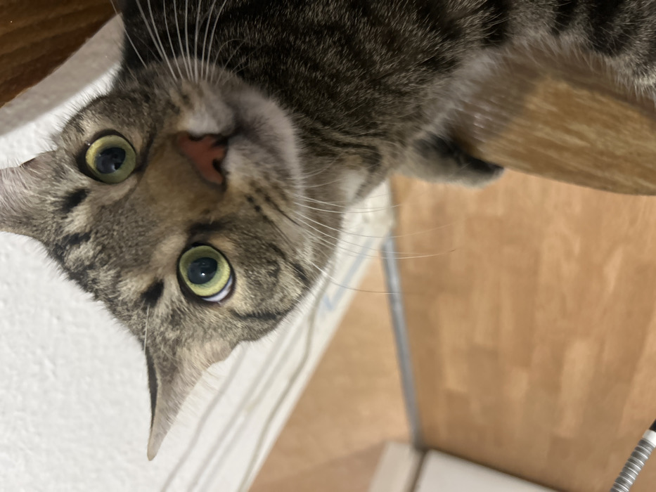 - "A tabby cat's face fills the frame, tilted sideways" by FM-UV3cT2, licensed under CC BY 4.0