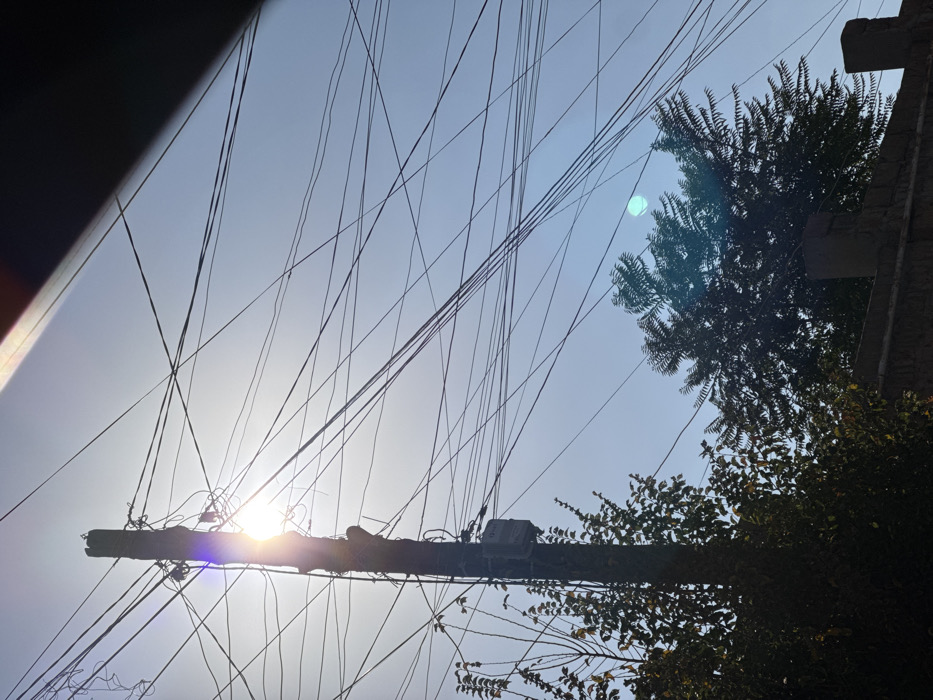 - "The image displays an overhead utility pole and a dense network of associated wiring against a bright daytime sky in Yerevan, Armenia" by FM-tgLAB2, licensed under CC BY 4.0