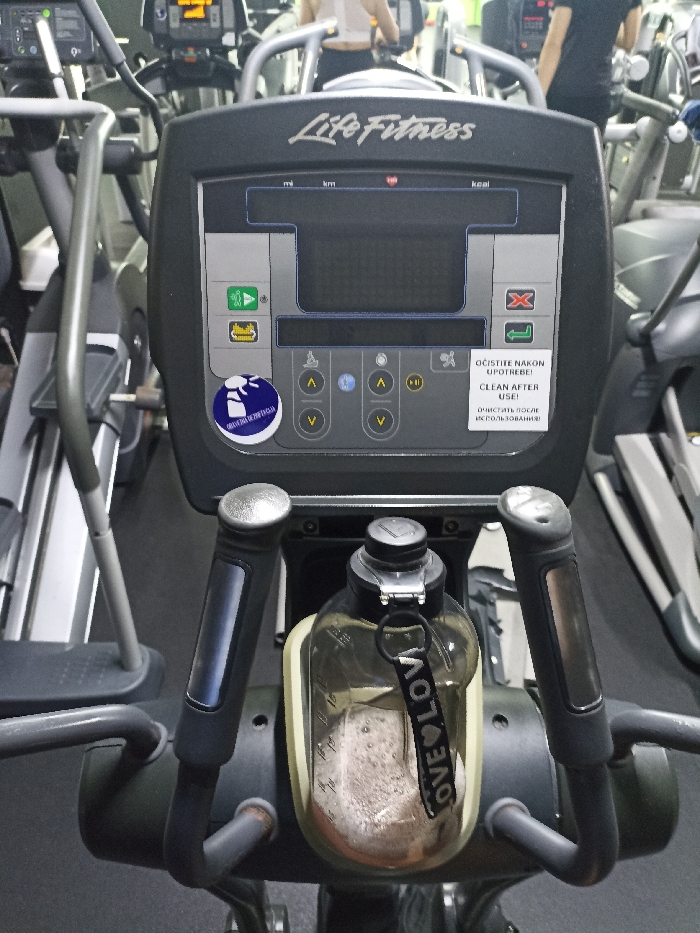 - "The image displays a close-up, eye-level view of the console of a black "Life Fitness" elliptical machine, situated within a gym in Budva, Montenegro" by FM-7wfYm1, licensed under CC BY 4.0