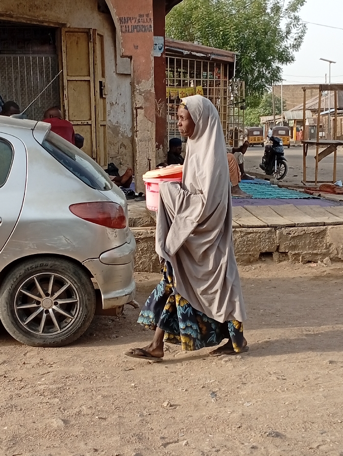 - "An outdoor scene in Gwagwarwa, Nigeria, depicts an elderly woman walking right to left across a dirt foreground" by FM-TtYM52, licensed under CC BY 4.0