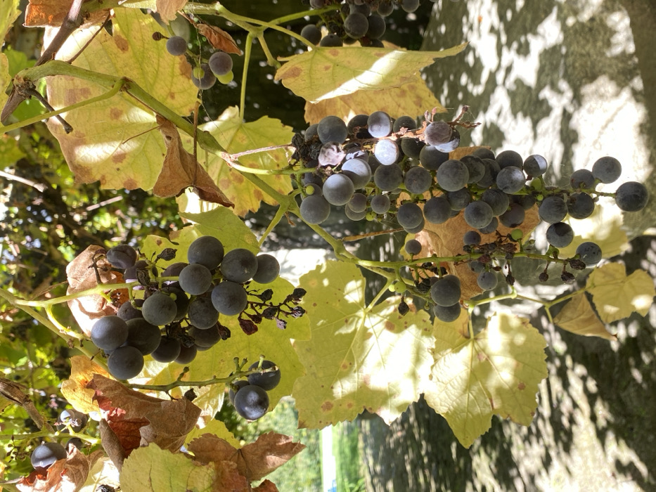 - "The image displays a close-up view of multiple clusters of dark purplish-blue grapes hanging from a grapevine in an outdoor setting in Ponte de Lima, Portugal" by FM-T4gP12, licensed under CC BY 4.0