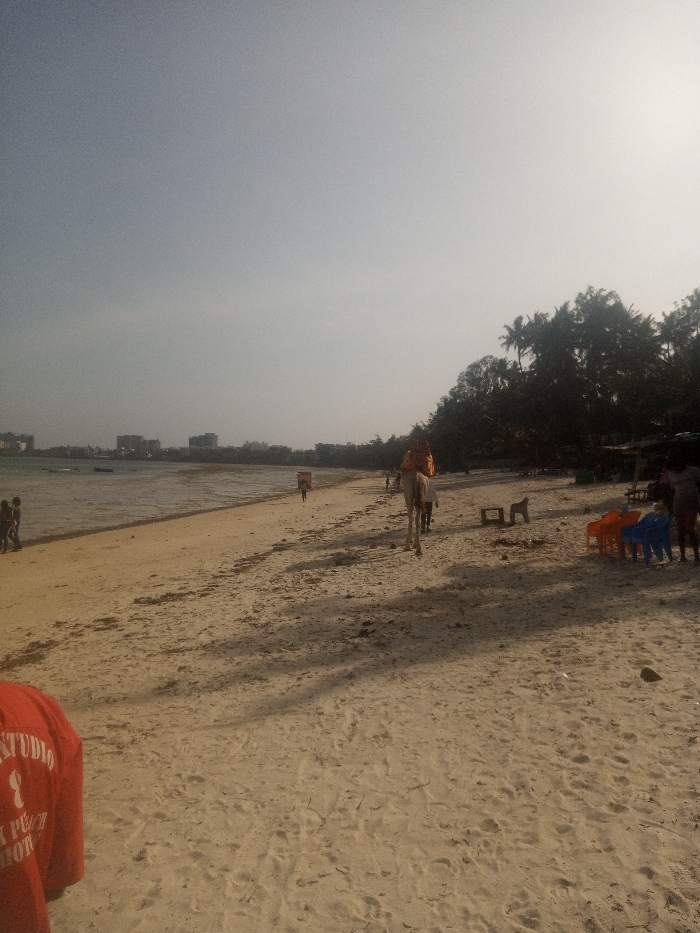 The scene depicts a daytime view of a sandy beach in Shanzu ward, Kenya