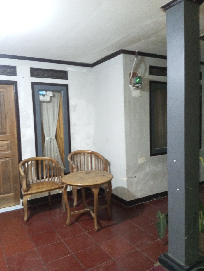 The image depicts an indoor or covered patio area in Karwan, India