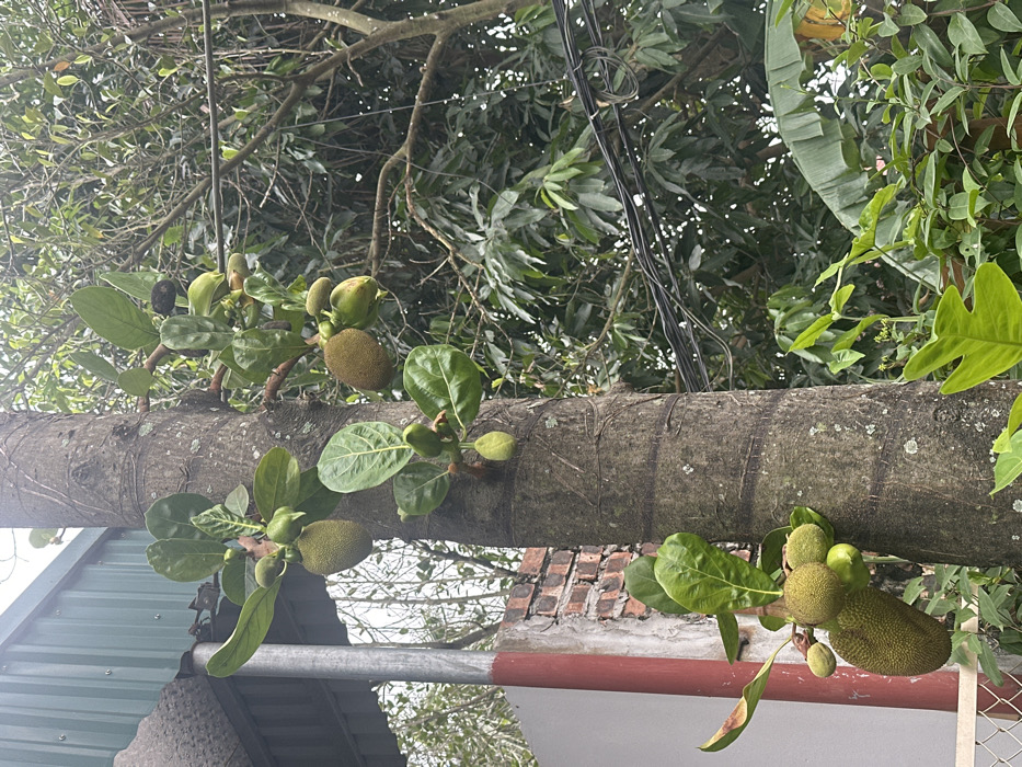 - "A thick, horizontal tree branch supports several jackfruit at various stages of growth" by FM-S4vcm1, licensed under CC BY 4.0