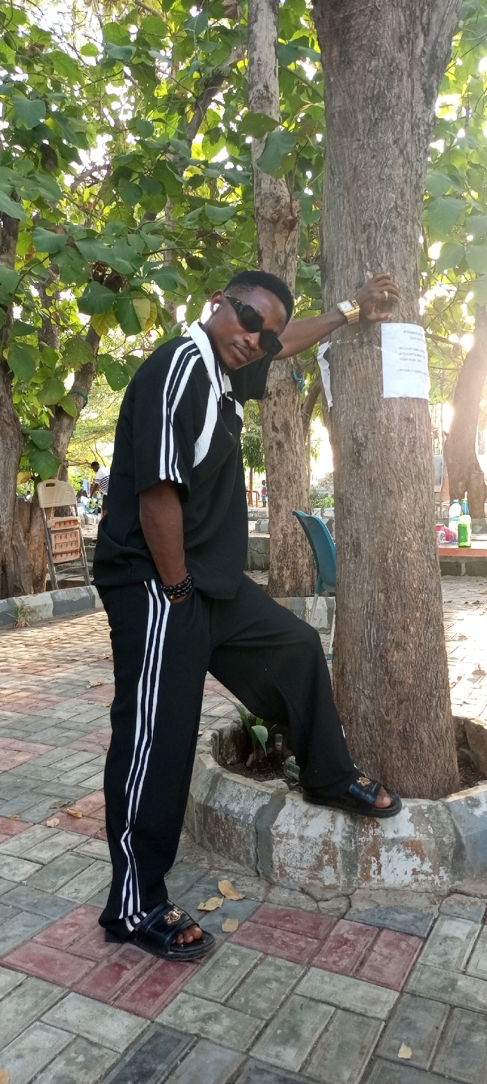 An adult male stands in an outdoor public area within Adankolo, Nigeria