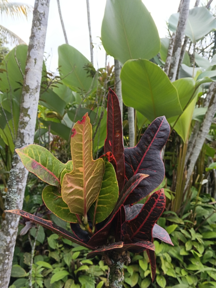 - "The image presents a detailed view of a variegated Croton plant (Codiaeum variegatum) situated outdoors in Trairão, Brazil" by FM-p1IIl1, licensed under CC BY 4.0