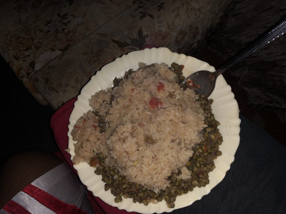 - "A white plate holds a large serving of rice, mixed with what appears to be diced tomatoes" by FM-E8bxZ2, licensed under CC BY 4.0