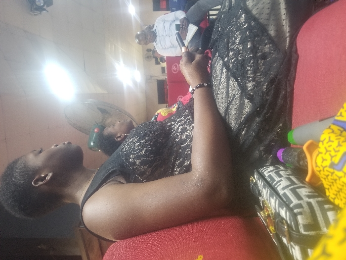 The image depicts an indoor gathering in Onitsha, Nigeria