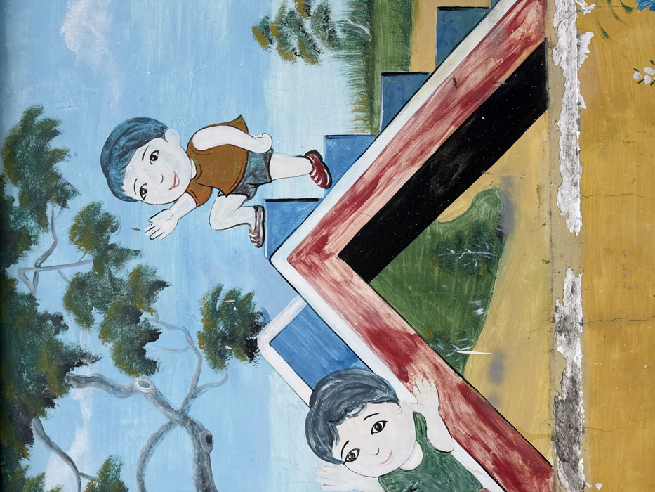 - "This image displays a painted mural located in Nha Trang, Vietnam, featuring two stylized children interacting with a colorful playground structure" by FM-I3ZPA3, licensed under CC BY 4.0
