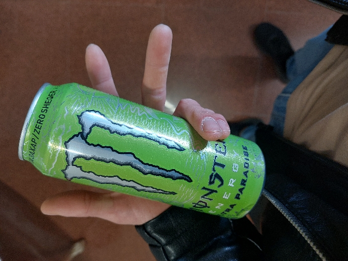 - "A first-person, eye-level image captures a person's right hand holding a lime green Monster Energy Ultra Paradise beverage can" by FM-OtFW43, licensed under CC BY 4.0