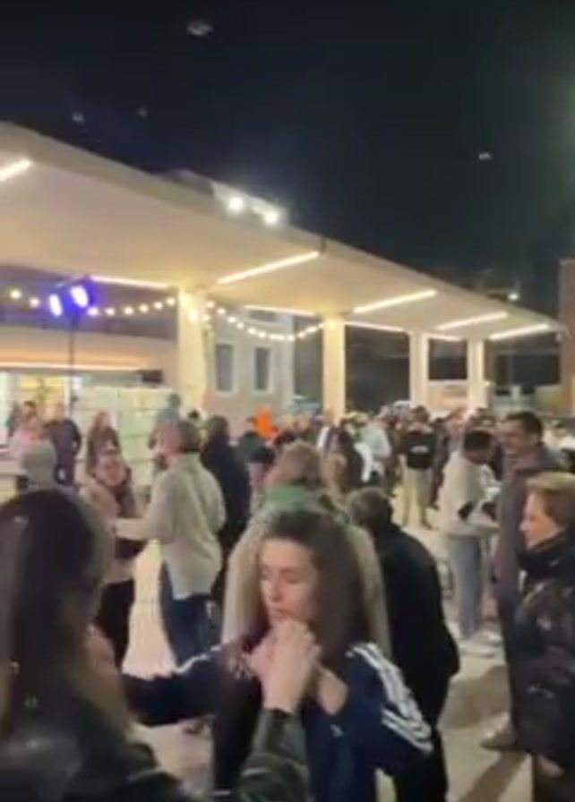 group of people dancing to live music outdoors at night
