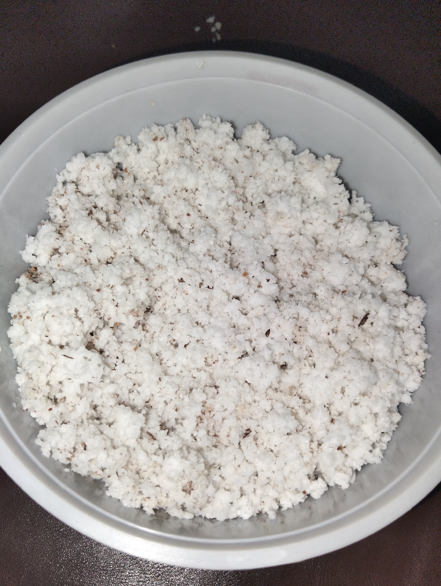 white plastic bowl filled with shredded coconut