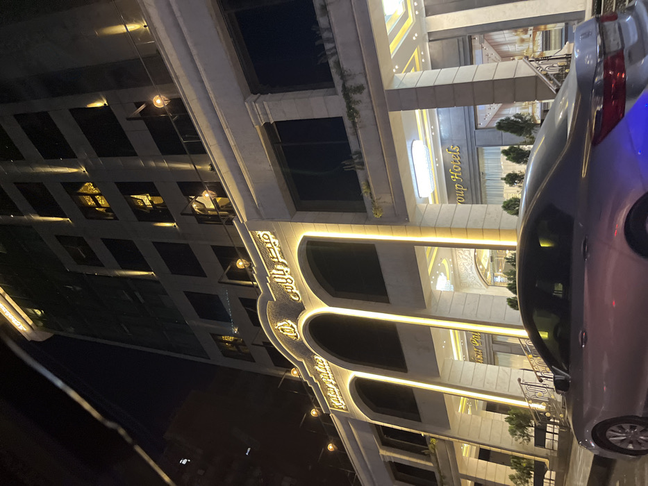 - "The image displays a multi-story, modern building identified as "Qasar Palace" / "قصر بالاس Hotels Group Hotels" at night, in Sarouja Municipality, Syria" by FM-Mi9R82, licensed under CC BY 4.0