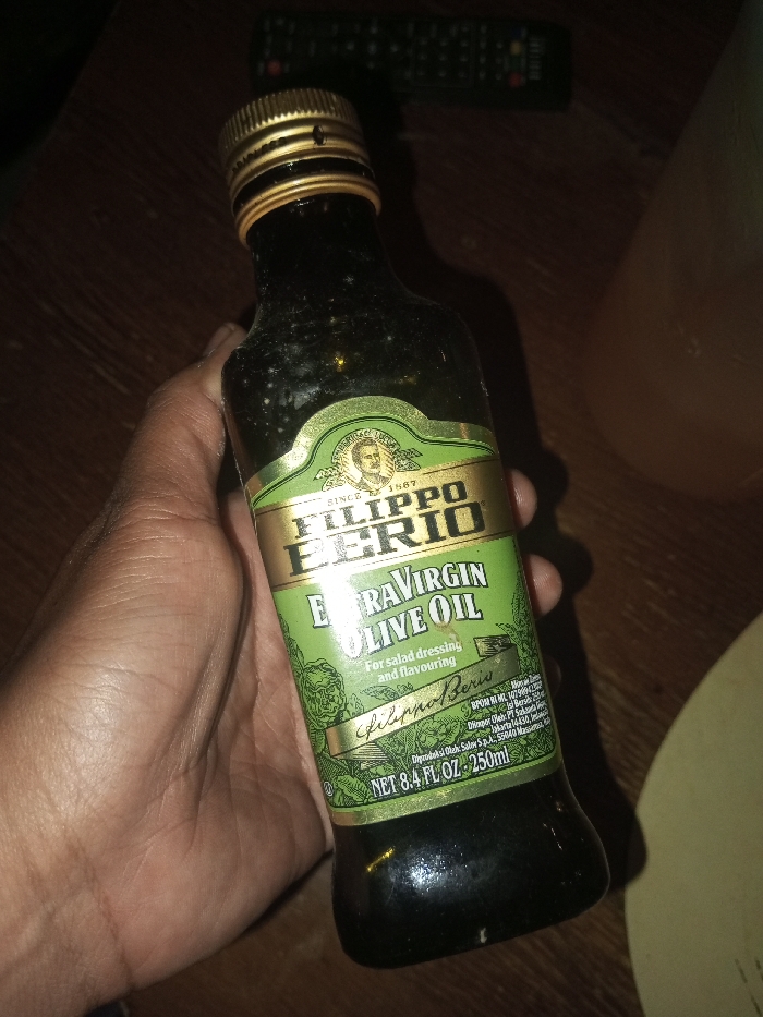 - "A person's hand holds a bottle of Filippo Berio extra virgin olive oil" by FM-3YrlQ2, licensed under CC BY 4.0