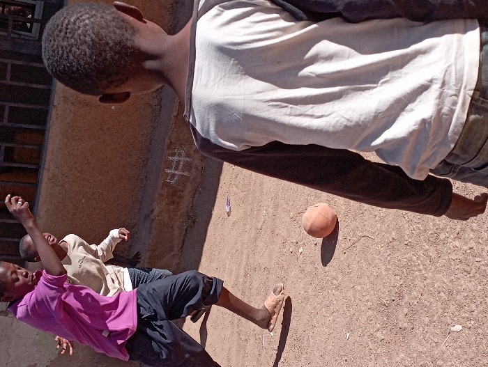 - "Three young Black males are depicted outdoors in Jos, Nigeria, engaged in a ball game on a dusty, reddish-brown dirt ground" by FM-4h3WA2, licensed under CC BY 4.0