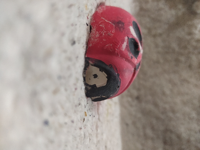 - "The image displays a small, worn toy ladybug resting on a granular, light-colored surface in Harasta, Syria" by FM-mcF8x2, licensed under CC BY 4.0