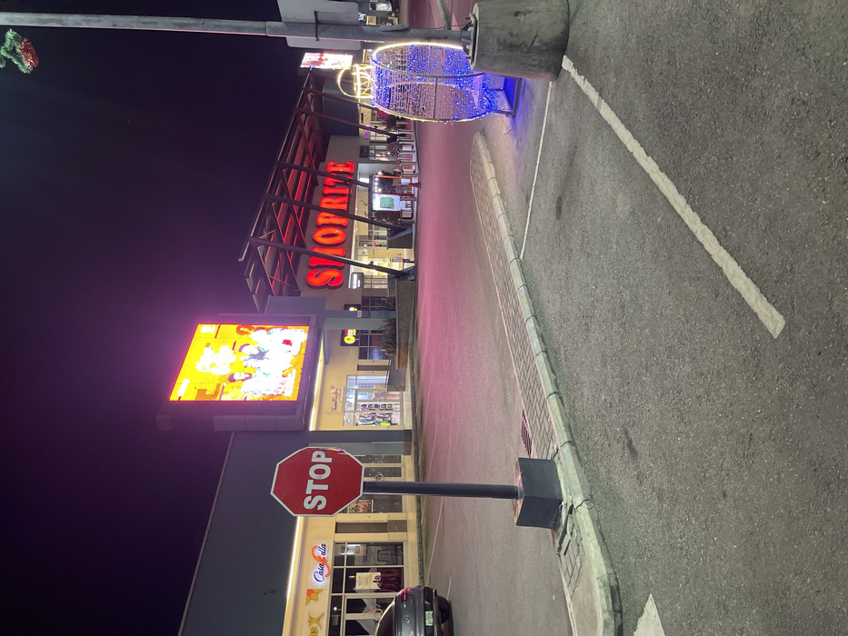 At night, a ShopRite store is visible, illuminated by its red logo