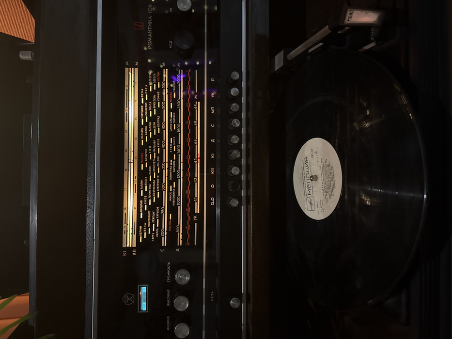- "The image displays a close-up of a vintage Soviet-era radiogram, identified as a "РОМАНТИКА-106" (ROMANTIKA-106) model, located indoors in Lida, Belarus" by FM-LoC4w2, licensed under CC BY 4.0