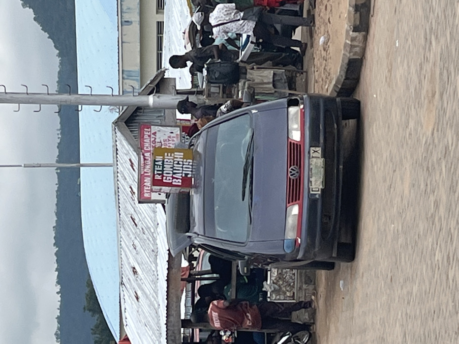 This image captures an active street scene in Lokoja, Nigeria, specifically at a transport hub or motor park