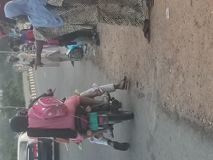 The image depicts an outdoor roadside scene in Lokoja, Nigeria, under daylight conditions