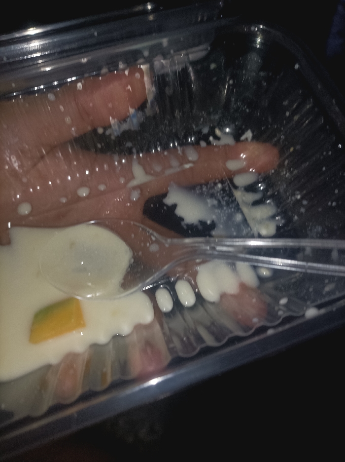 - "The scene depicts a clear, rectangular plastic container, likely a takeaway dessert package, situated in the city of Bogor, Indonesia" by FM-gcMLf1, licensed under CC BY 4.0