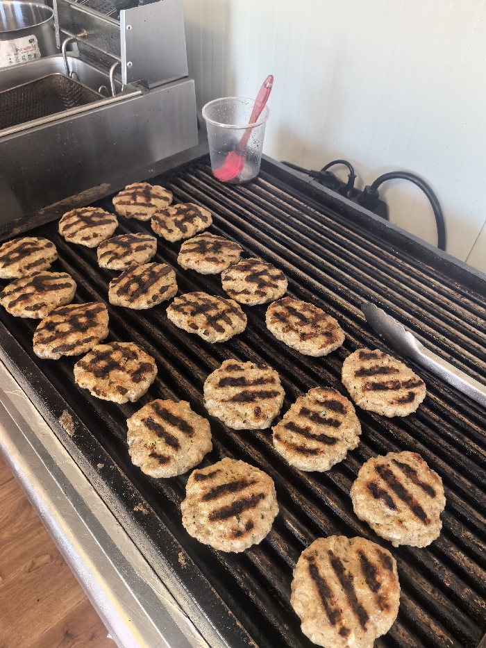- "A close-up, elevated view depicts approximately 23 round, cooked meat patties, consistent with the style of Bulgarian kyufte, arranged on the ribbed surface of a black commercial electric grill" by FM-oT3Zp1, licensed under CC BY 4.0