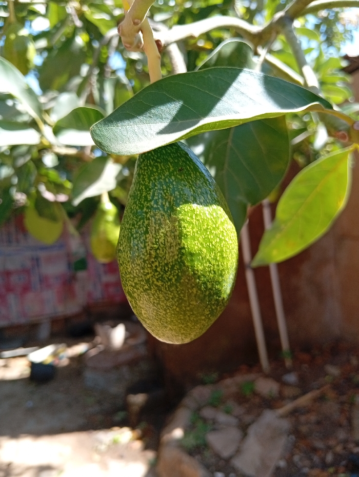 - "An immature avocado fruit hangs from a branch in an outdoor setting in Unknown, Unknown" by FM-48EfZ2, licensed under CC BY 4.0