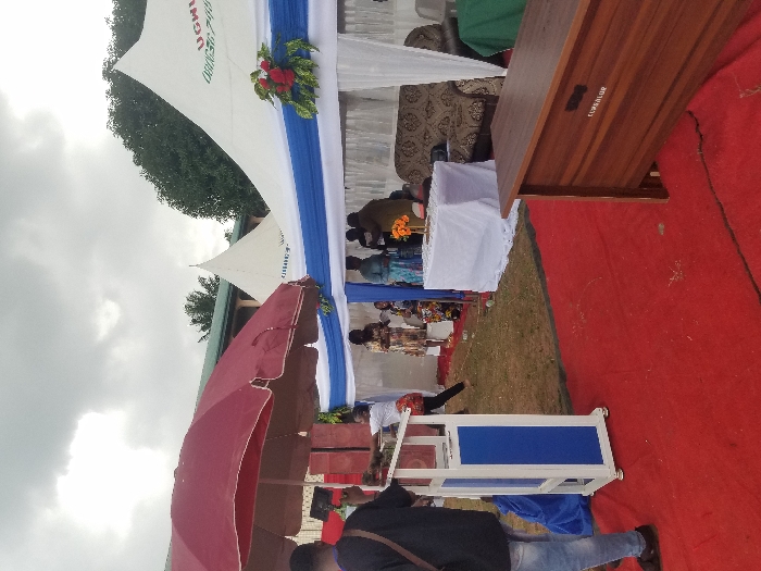 An outdoor event is depicted in the city of Alor, Nigeria, under an overcast sky