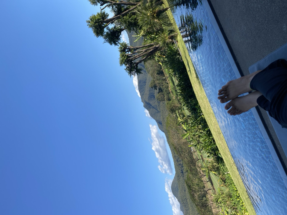 - "The image displays a person's bare feet resting on a dark grey sun lounger at the near edge of an infinity pool, overlooking a mountainous valley in Pai, Thailand" by FM-lJYSz1, licensed under CC BY 4.0
