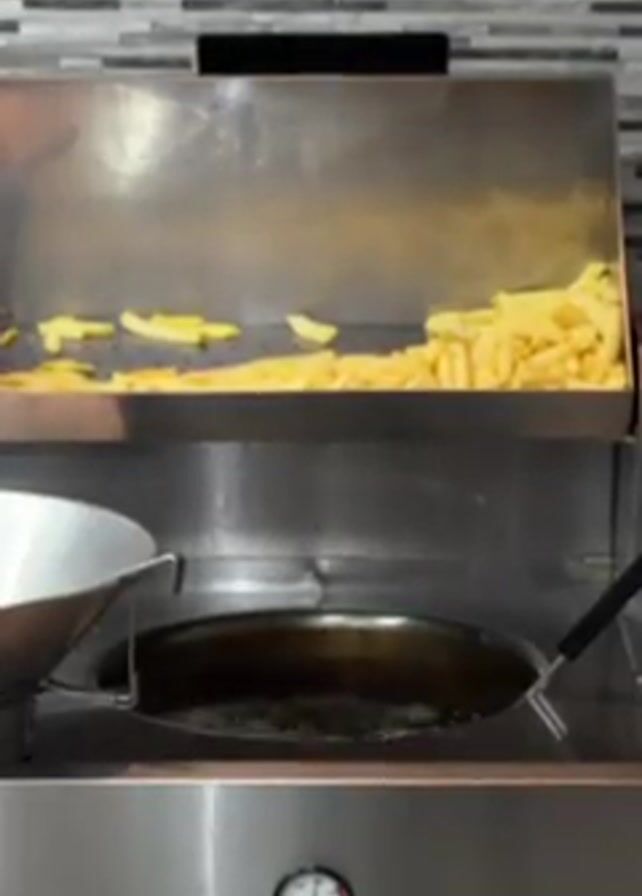 - "commercial deep fryer with a pile of french fries sitting above the hot oil" by FM-iR7bg1, licensed under CC BY 4.0