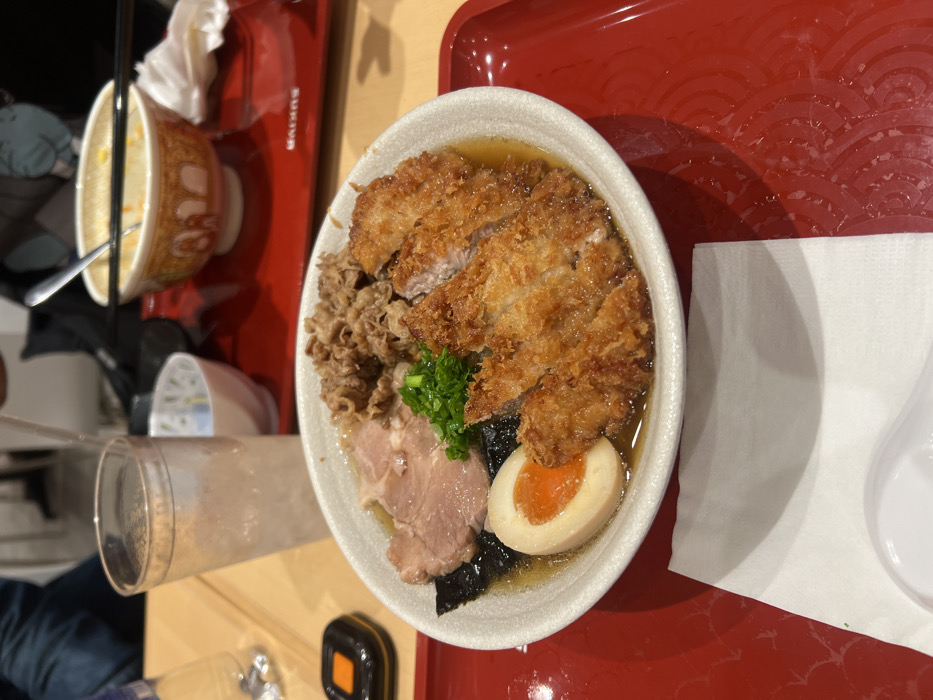- "The image displays a close-up of a large bowl of ramen served on a red plastic tray within a Sukiya restaurant in Thủ Đức, Vietnam" by FM-rv6zS2, licensed under CC BY 4.0