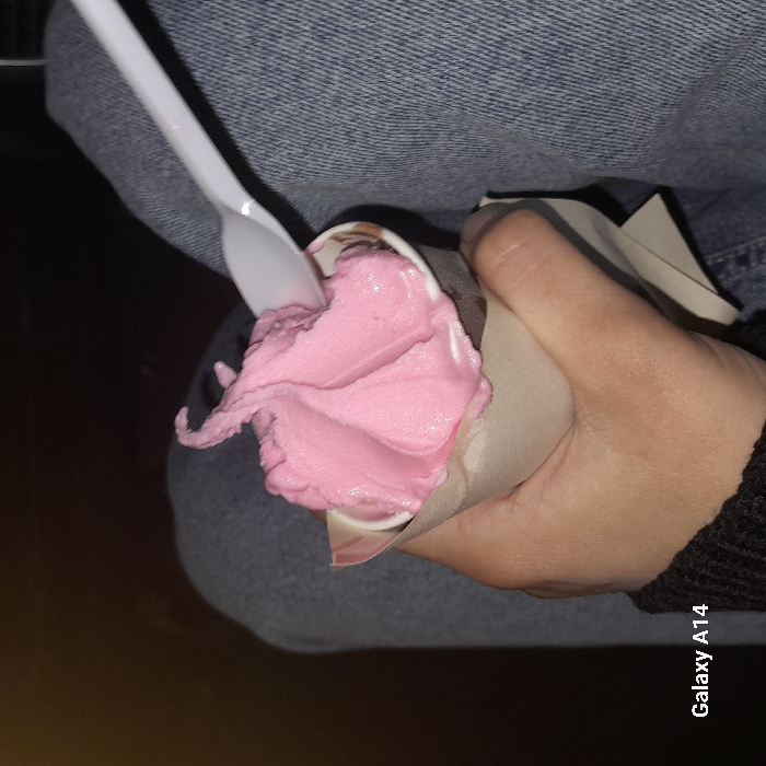 - "A close-up captures a hand holding a cup filled with pink ice cream" by FM-V8KrL2, licensed under CC BY 4.0
