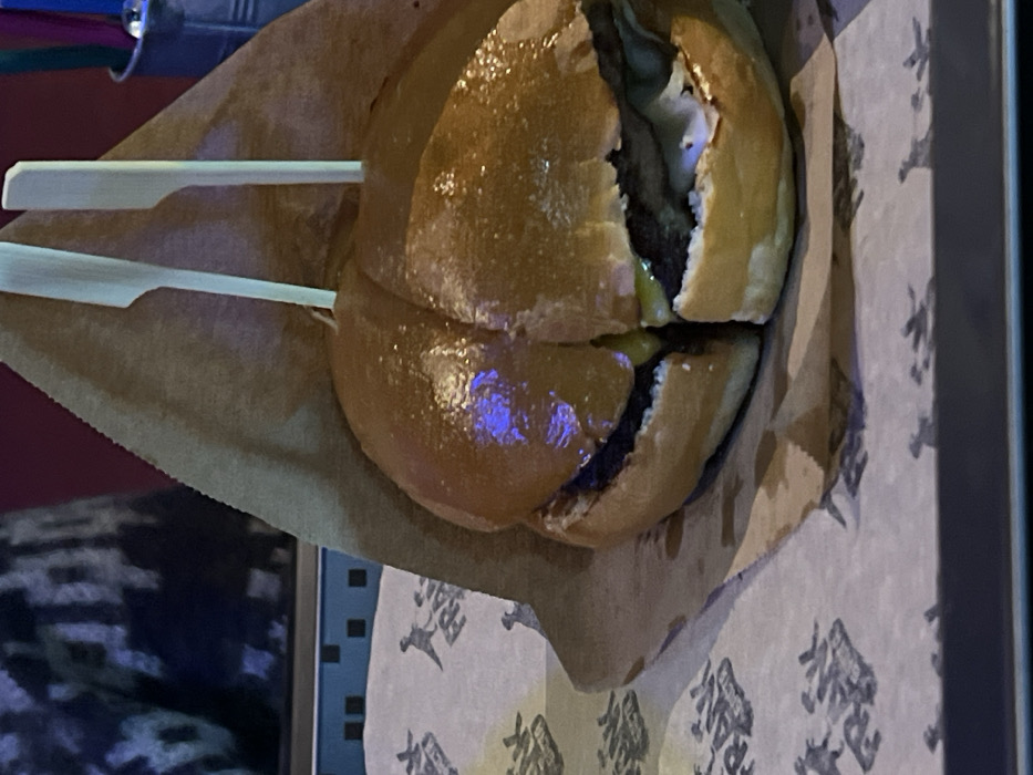 - "A large hamburger, bisected into two halves, occupies the central foreground" by FM-Q4irk1, licensed under CC BY 4.0