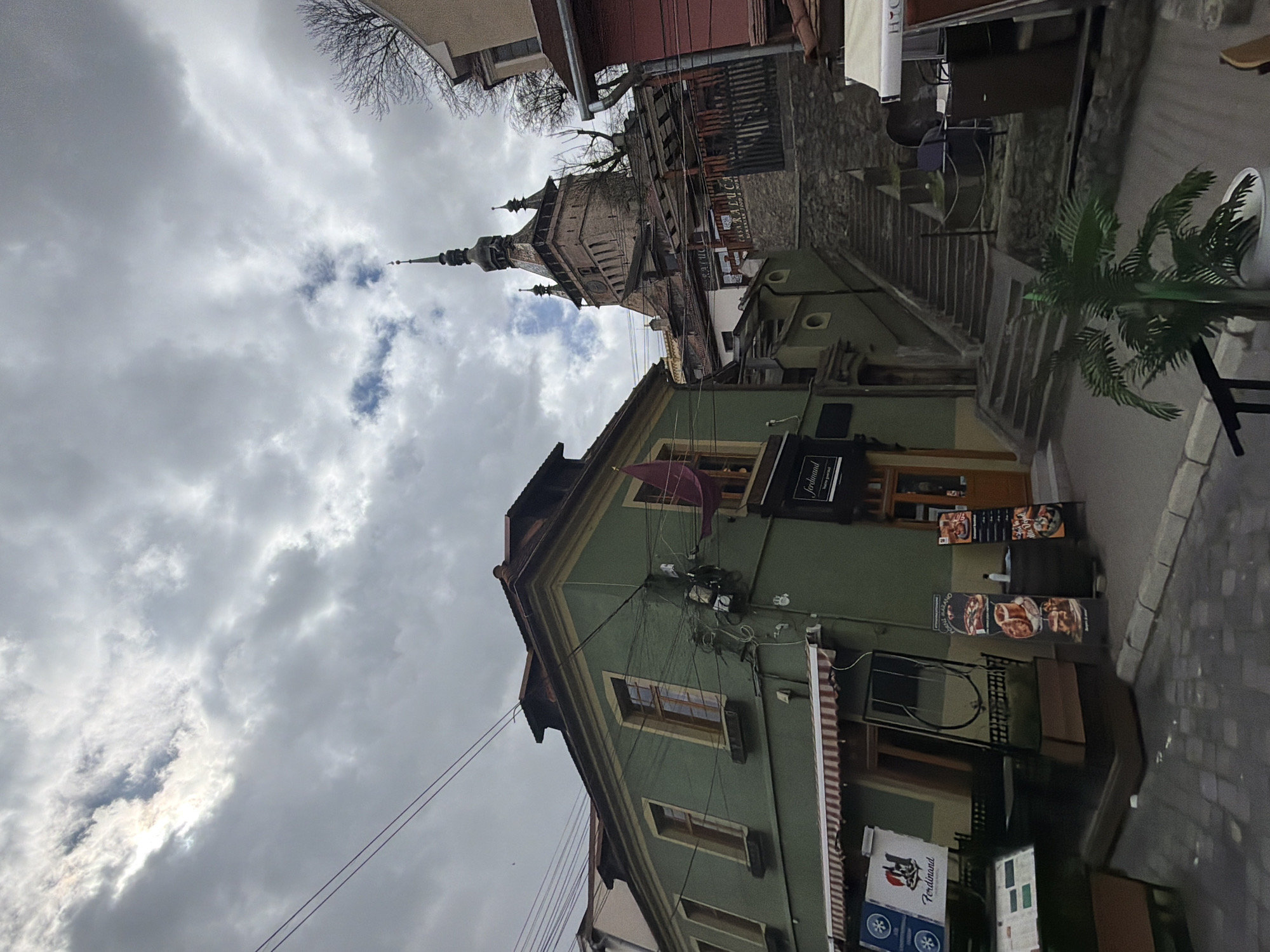 - "The image is an upward-facing shot of the Clock Tower (Turnul cu Ceas), located in the city of Sighișoara, Romania, against a cloudy sky" by FM-PU0HJ3, licensed under CC BY 4.0