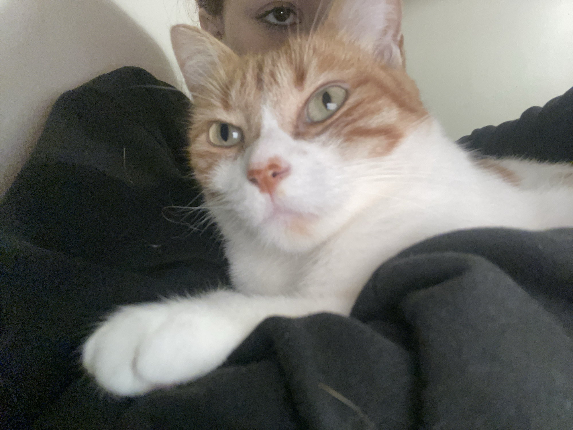 - "A close-up photograph shows an orange and white cat being held in someone's arms" by FM-kGSN22, licensed under CC BY 4.0