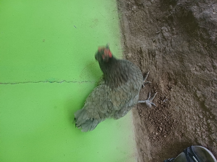 - "The image displays a domestic fowl, identified as a chicken, positioned against a lime-green painted wall within a dirt-floored environment in Cotorra, Colombia" by FM-wxsQB3, licensed under CC BY 4.0