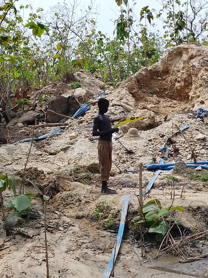 This image, captured in Otulu, Nigeria, displays an outdoor scene characterized by disturbed terrain