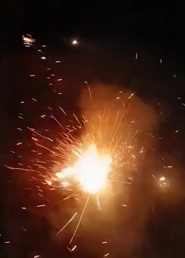 firecracker exploding on a dark, possibly outdoor, surface