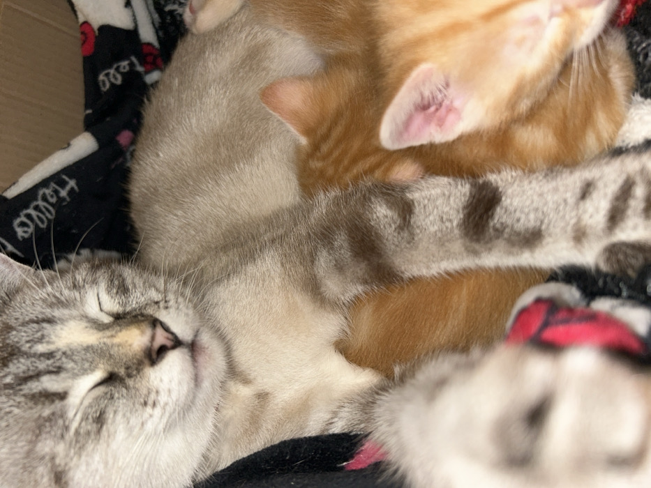 - "The scene depicts an adult cat and several kittens resting in an enclosed, interior setting within Strasbourg, France" by FM-ZvYlO2, licensed under CC BY 4.0