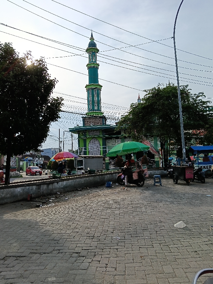- "The image depicts a daytime street scene in Sumberejo, Indonesia, centered around a green and white mosque with a tall, distinctive minaret" by FM-rqqp93, licensed under CC BY 4.0