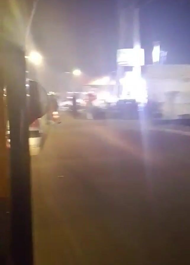 The video is shot from the inside of a yellow auto rickshaw driving on a road at night